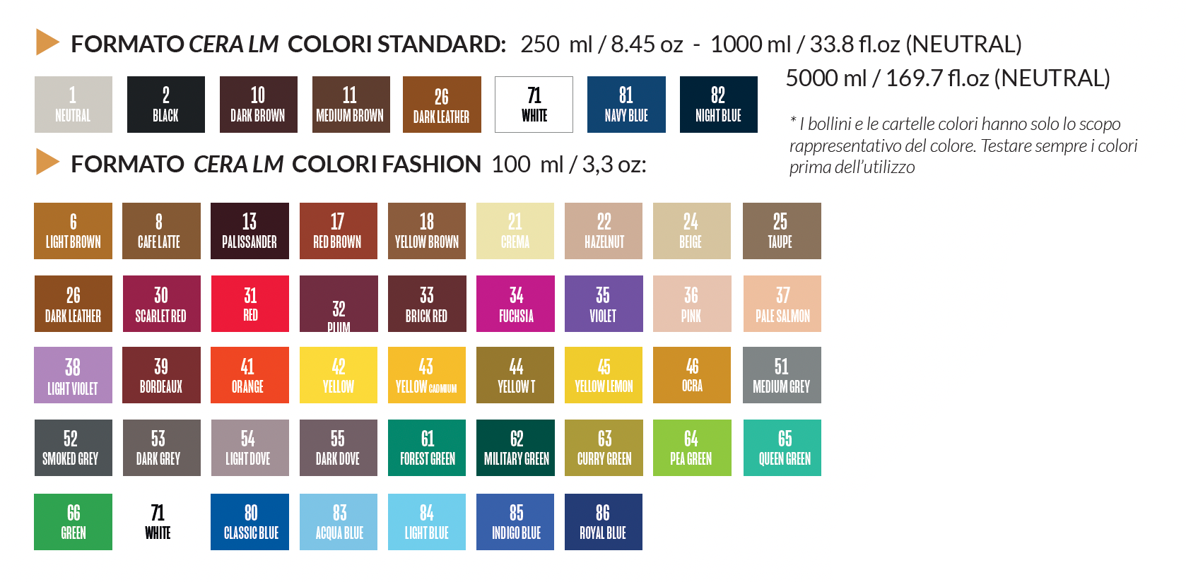 Cera LM è una cera in crema colorata per scarpe. Ha funzione di: